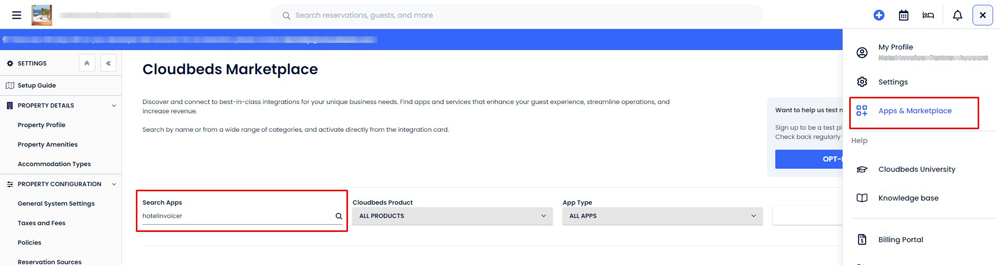 To connect Hotelinvoicer.gr app from Cloudbeds' Marketplace, you can visit the marketplace search for Hotelinvoicer.gr
